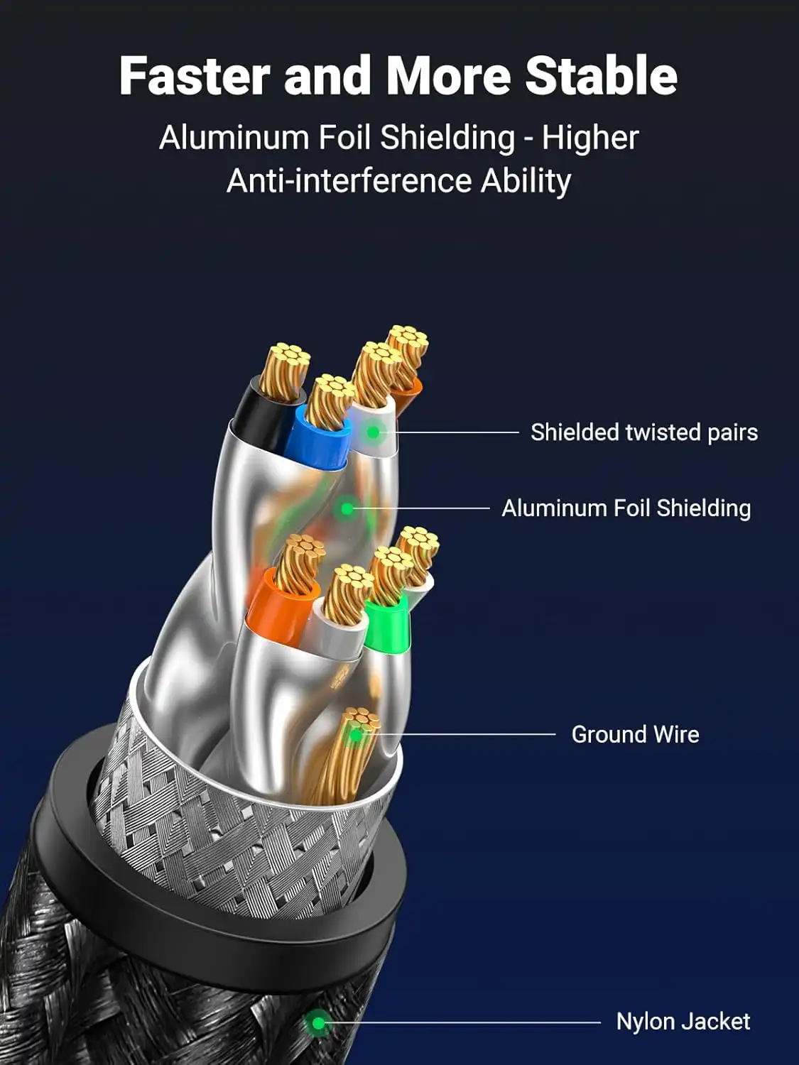 کابل شبکه UGREEN Cat 8 NW153 با فراتر رفتن از محدودیتهای کابلهای نسل قبل مانند Cat 6a و Cat 7، گامی بزرگ به سوی آینده برداشته است. ویژگی برجسته این کابل، توانایی آن در پشتیبانی از سرعت انتقال داده ۴۰ گیگابیت بر ثانیه (40Gbps) است. این سرعت فوقالعاده، که چهار برابر سرعت معمول ۱۰ گیگابیت بر ثانیه در Cat 6a است، برای کاربردهایی حیاتی است که در آنها حجم عظیمی از داده باید در لحظه جابهجا شود؛ مانند مراکز داده ابری (Cloud Data Centers)، شبکههای سرور با ظرفیت بالا، و محیطهای گیمینگ و استریمینگ 8K که نیاز به پهنای باند پایدار و عظیم دارند. Cat 8 تنها برای مسافتهای کوتاه (تا حداکثر ۳۰ متر) این سرعت را تضمین میکند و عملکرد آن در فرکانس ۲۰۰۰ مگاهرتز (2GHz)، به معنای تأخیر (Latency) بسیار پایین و نرخ خطای (BER) نزدیک به صفر است. این قابلیت، آن را به یک انتخاب بیرقیب برای سازمانها و کاربرانی تبدیل میکند که به دنبال حداکثر کارایی و اطمینان در انتقال دادههای خود هستند و میخواهند شبکه خود را برای چندین سال آینده آماده کنند.