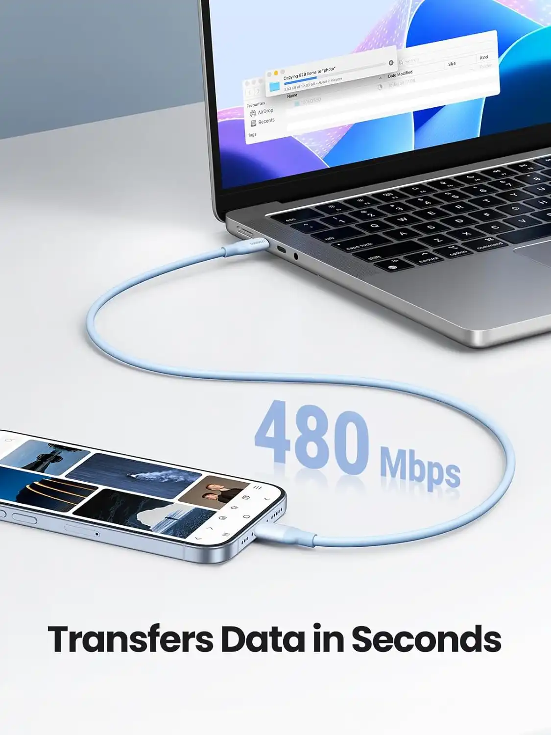 در کنار شارژ قدرتمند، کابل سیلیکونی یوگرین US563 عملکرد بسیار خوبی در زمینه انتقال داده‌ها ارائه می‌دهد. این کابل از استاندارد USB 2.0 پشتیبانی می‌کند که امکان انتقال داده‌ها با سرعت قابل قبول 480 مگابیت بر ثانیه (480Mbps) را فراهم می‌آورد. گرچه این سرعت به اندازه استانداردهای جدیدتر مانند USB 3.0 یا Thunderbolt نیست، اما برای نیازهای روزمره کاربران مانند انتقال فایل‌های متوسط، همگام‌سازی اطلاعات گوشی با کامپیوتر، یا پشتیبان‌گیری سریع از عکس‌ها و اسناد، کاملاً کافی و رضایت‌بخش است.