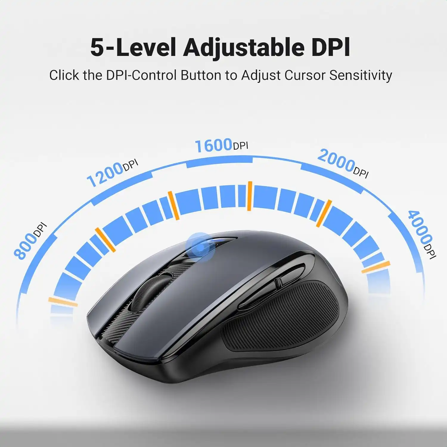 همچنین، این ماوس از دقت متغیر تا ۴۰۰۰ DPI پشتیبانی میکند. این ماوس با سه سطح دقت قابل تنظیم (۱۰۰۰، ۱۶۰۰ و ۴۰۰۰ DPI) عرضه میشود که با فشردن یک دکمه در بالای ماوس قابل تغییر است. دقت ۱۰۰۰ DPI برای کارهای عمومی و وبگردی مناسب است، ۱۶۰۰ DPI برای کارهای اداری و طراحیهای سادهتر، و ۴۰۰۰ DPI برای کارهایی که نیاز به دقت بسیار بالا دارند، مانند طراحی گرافیکی حرفهای یا حتی بازیهای کامپیوتری. این قابلیت به کاربر اجازه میدهد تا حساسیت ماوس را بر اساس نوع کار خود تنظیم کند و بهترین عملکرد را تجربه کند. وجود دقت بالای ۴۰۰۰ DPI این ماوس را به گزینهای جذاب برای طراحان و افرادی که از مانیتورهای با رزولوشن بالا استفاده میکنند، تبدیل کرده است.